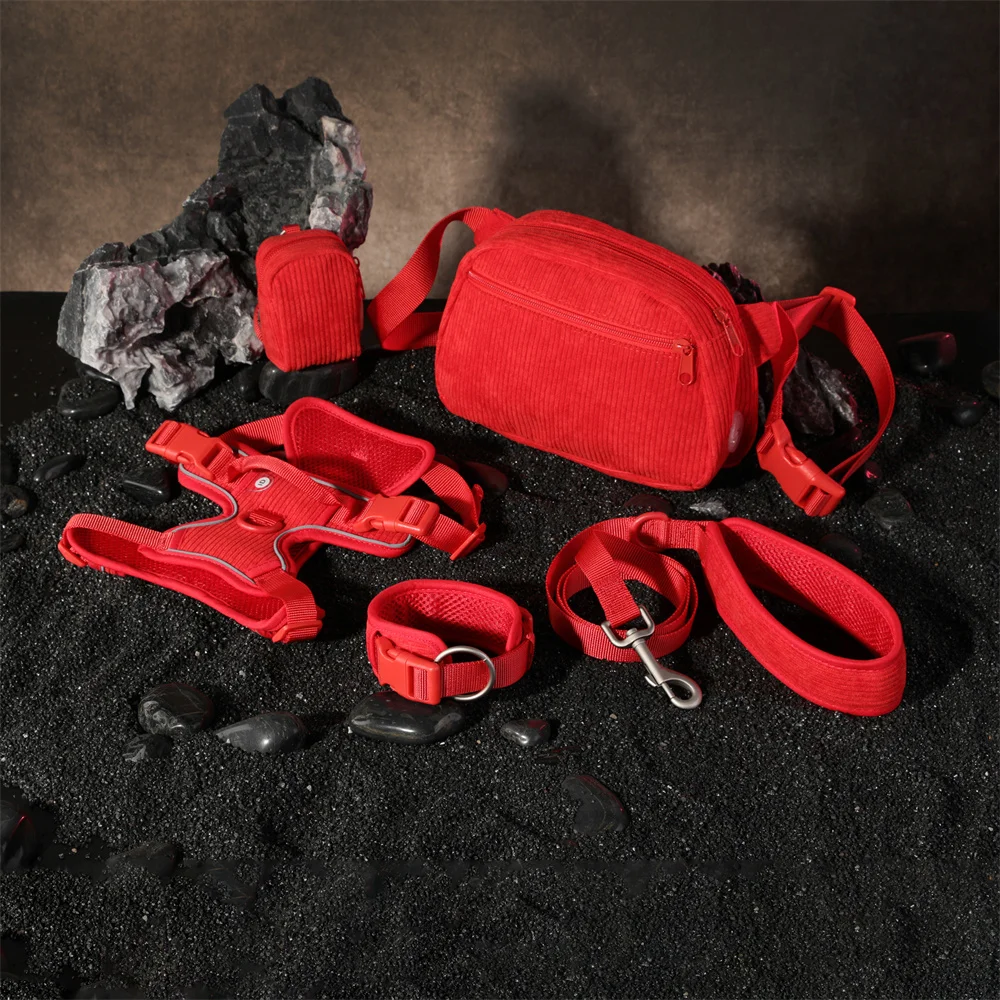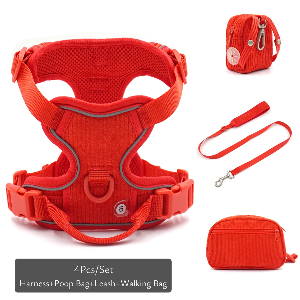 Luxury Designer Collars for Dogs Personalized Fully Adjustable Fashion Dog Harness Set with Lead Poop Bag Storage Shoulder Bag