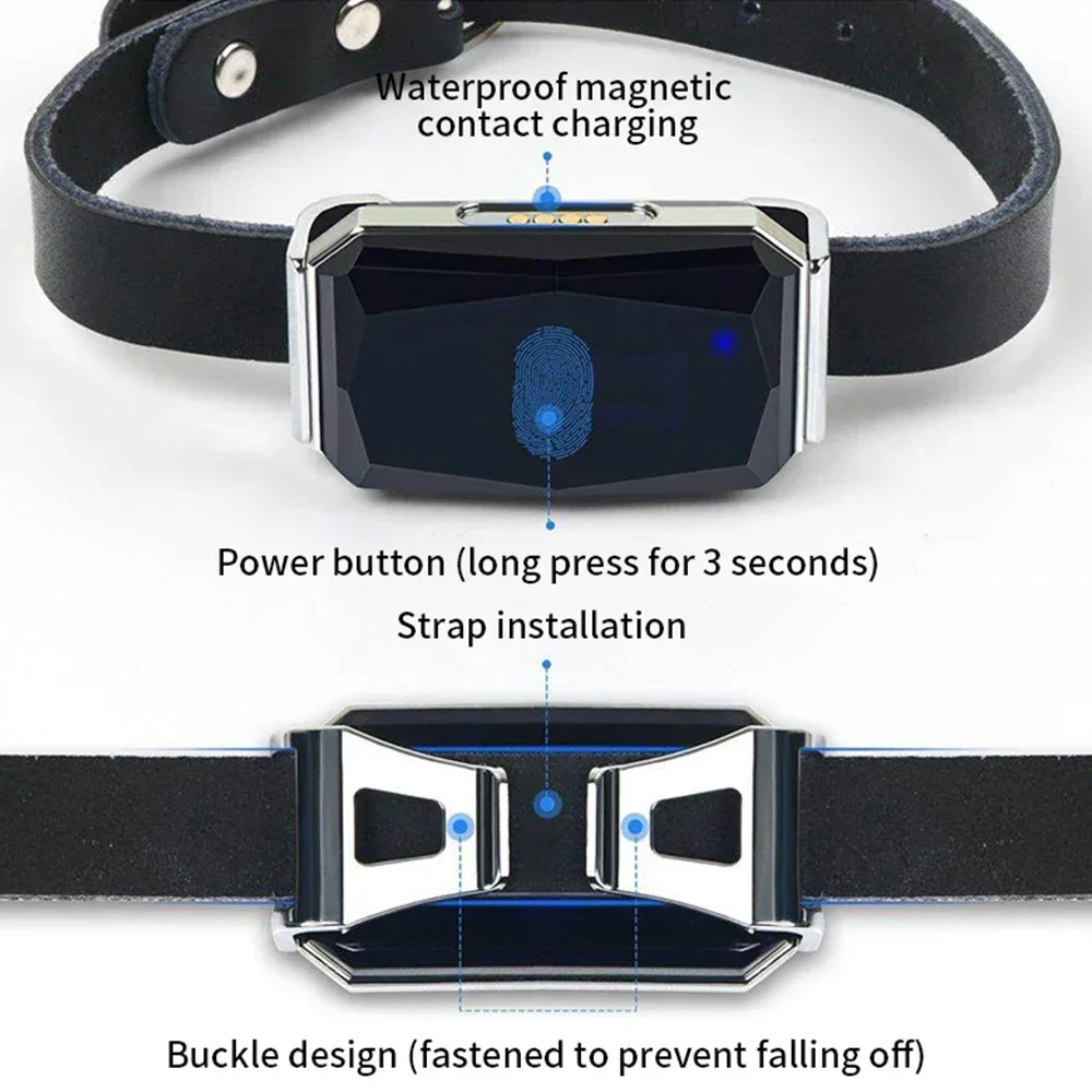 Smart GPS pet tracker with 5m accuracy, IP67 waterproof, 10-day battery, and geofence alerts. SIM card required for real-time tracking of dogs and cats.